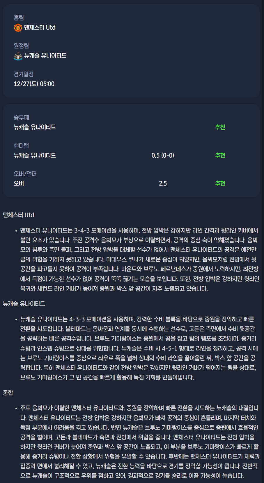 2025년 12월 27일 EPL 분석자료 / 축구분석