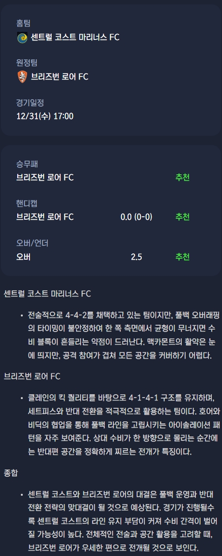 2025년 12월 31일 A리그 분석자료 / 축구분석