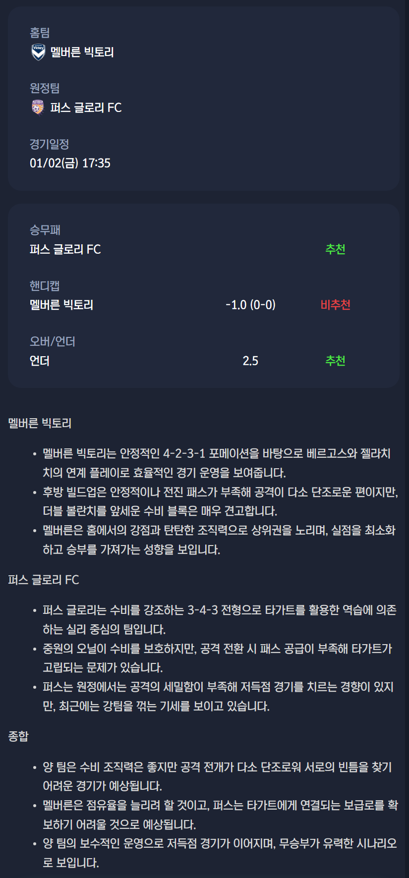 2026년 1월 2일 A리그 분석자료 / 축구분석