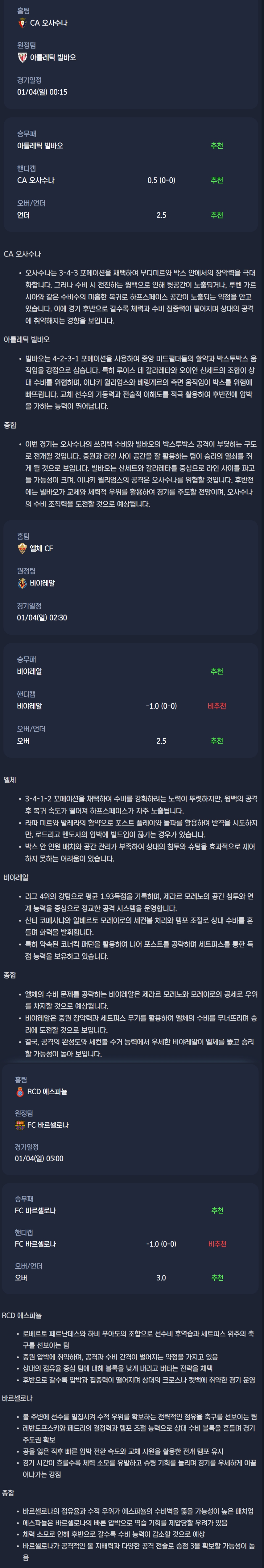 2026년 01월 04일 라리가 분석자료 / 축구분석