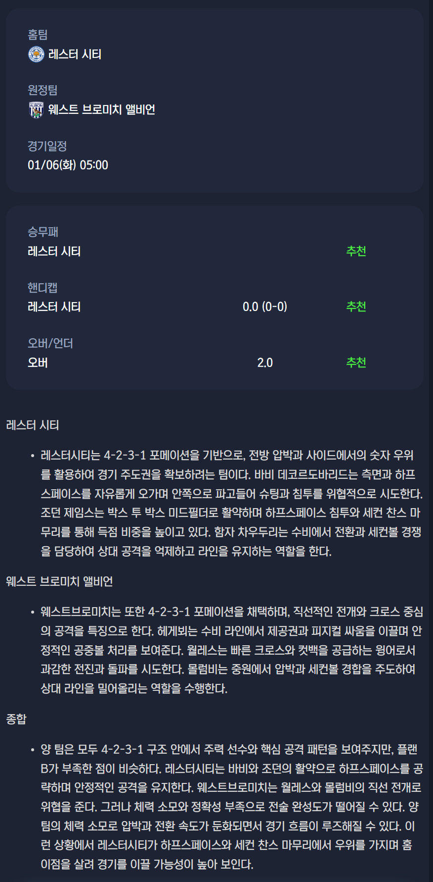 레스터 시티 vs 웨스트 브로미치 앨비언