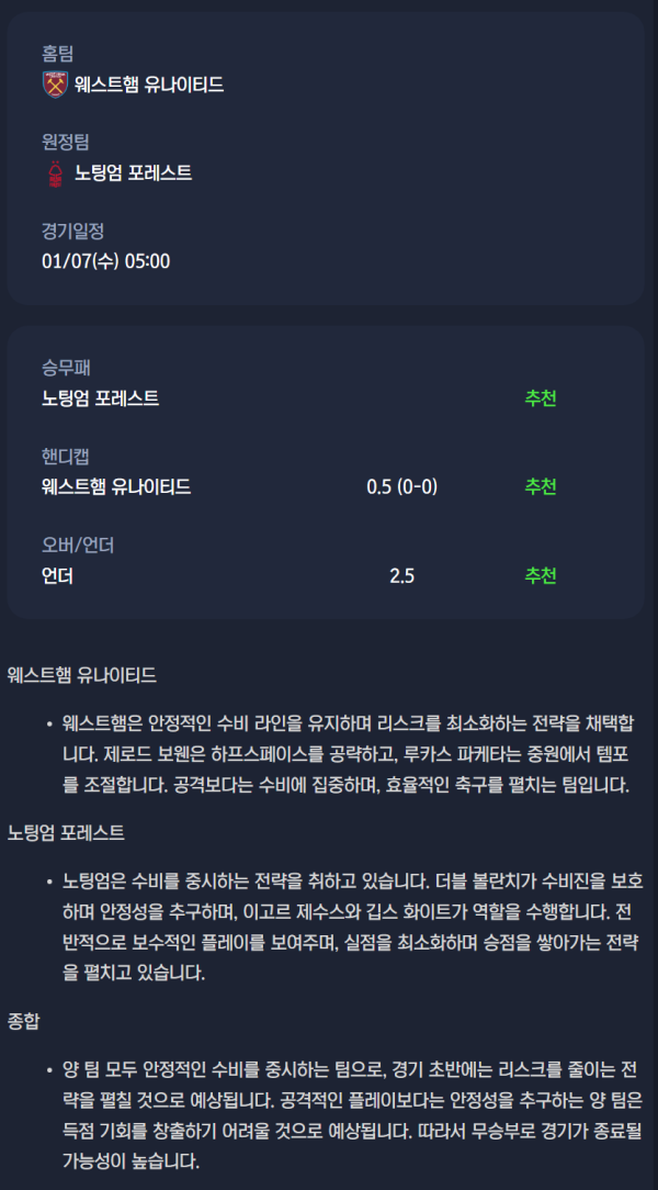 웨스트햄 유나이티드 vs 노팅엄 포레스트