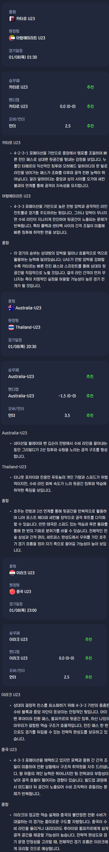 카타르 U23 vs 아랍에미리트 U23 / 호주 U23 vs 태국 U23 / 이라크 U23 vs 중국 U23