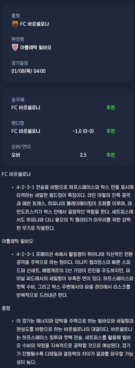 2026년 01월 08일 수페르코파 데 에스파냐 분석자료 / 축구분석