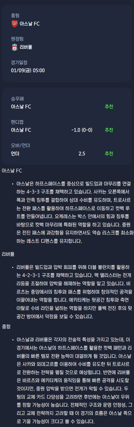 2026년 01월 09일 EPL 분석자료 / 축구분석
