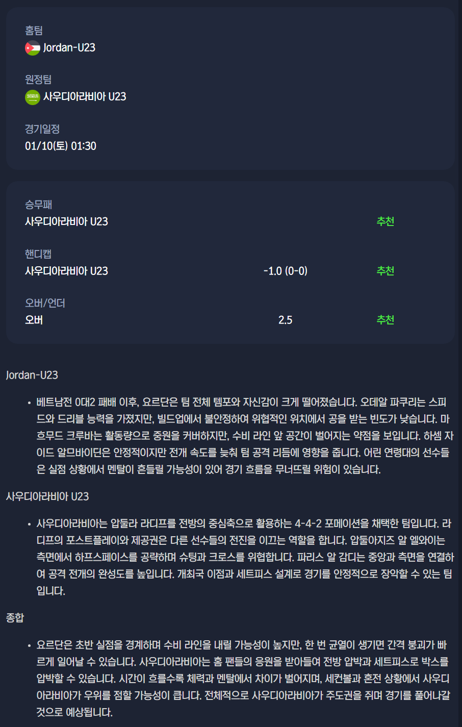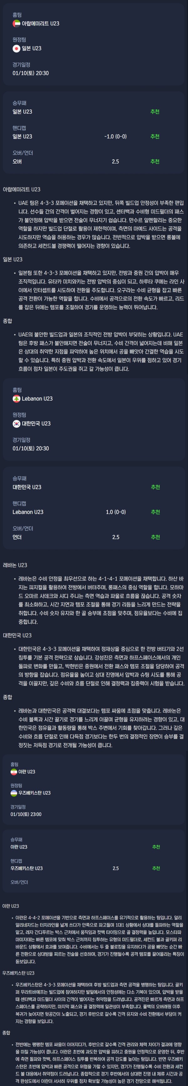 2026년 01월 10일 AFC U23 아시안컵 / 축구분석