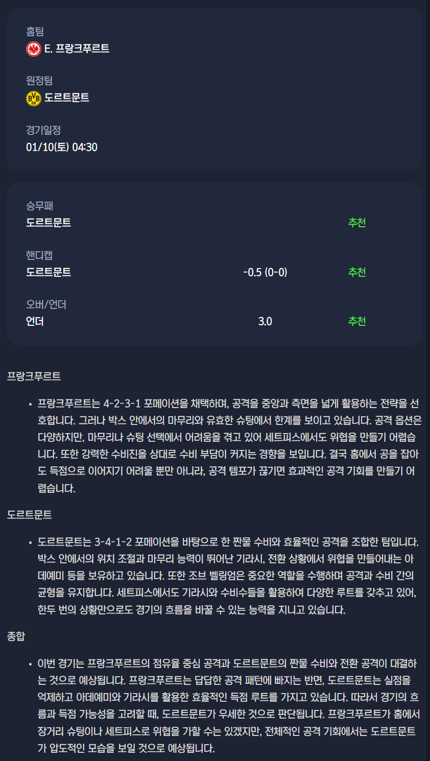 2026년 01월 10일 분데스리가 분석자료 / 축구분석