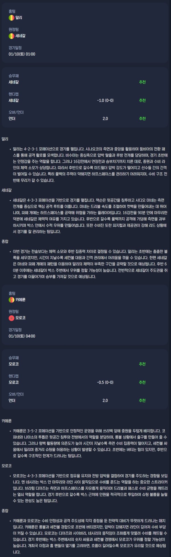 2026년 01월 10일 아프리카 네이션스컵 분석자료 / 축구분석