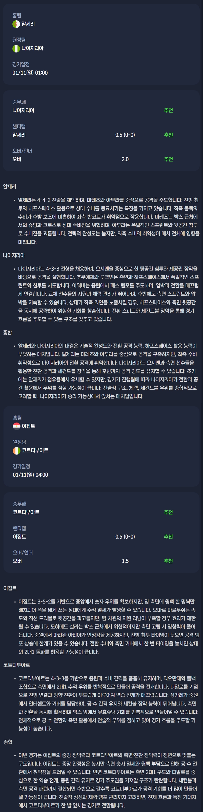 2026년 01월 11일 아프리카 네이션스컵 분석자료 / 축구분석
