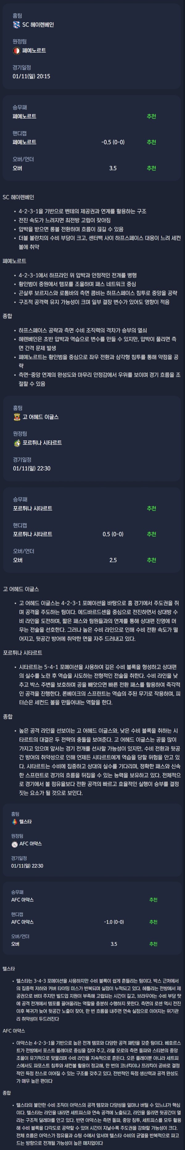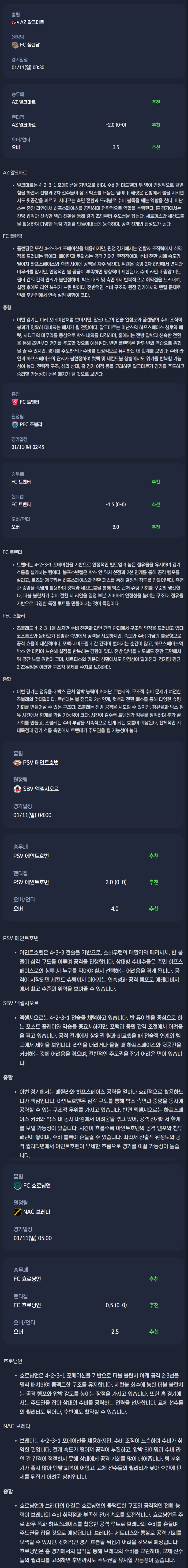 2026년 01월 11일 에레디비시 분석자료 / 축구분석