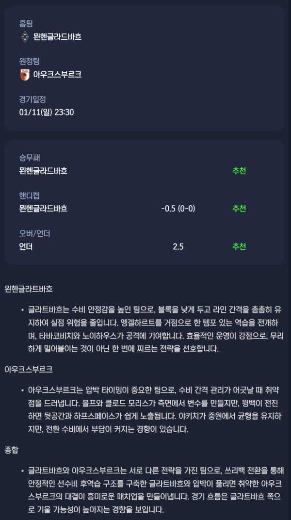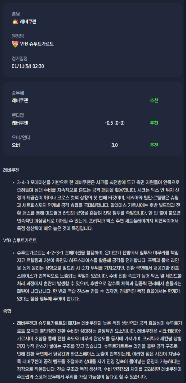 2026년 01월 11일 분데스리가 분석자료 / 축구분석