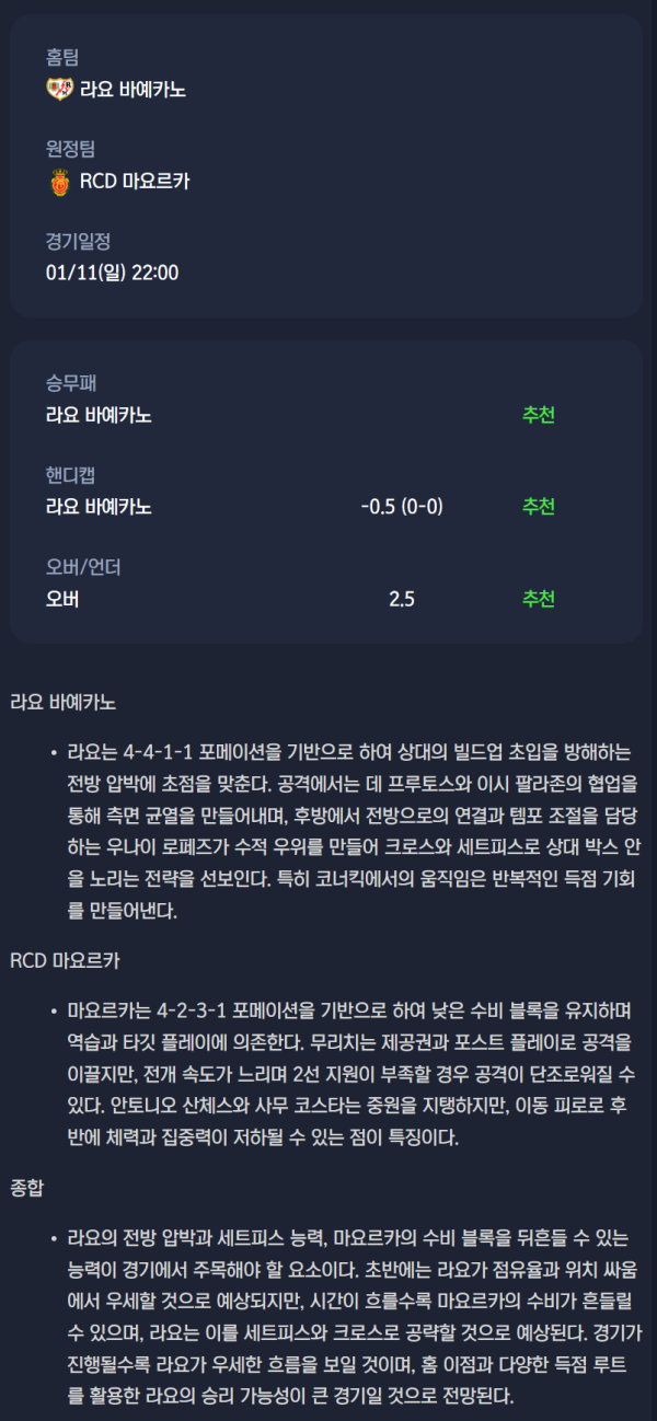 2026년 01월 11일 라리가 분석자료 / 축구분석