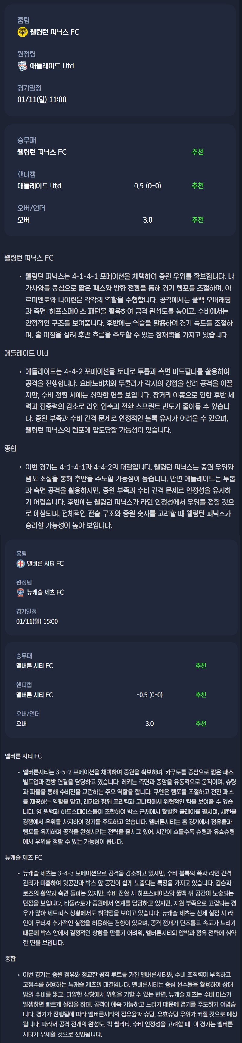 2026년 01월 11일 A리그 분석자료 / 축구분석