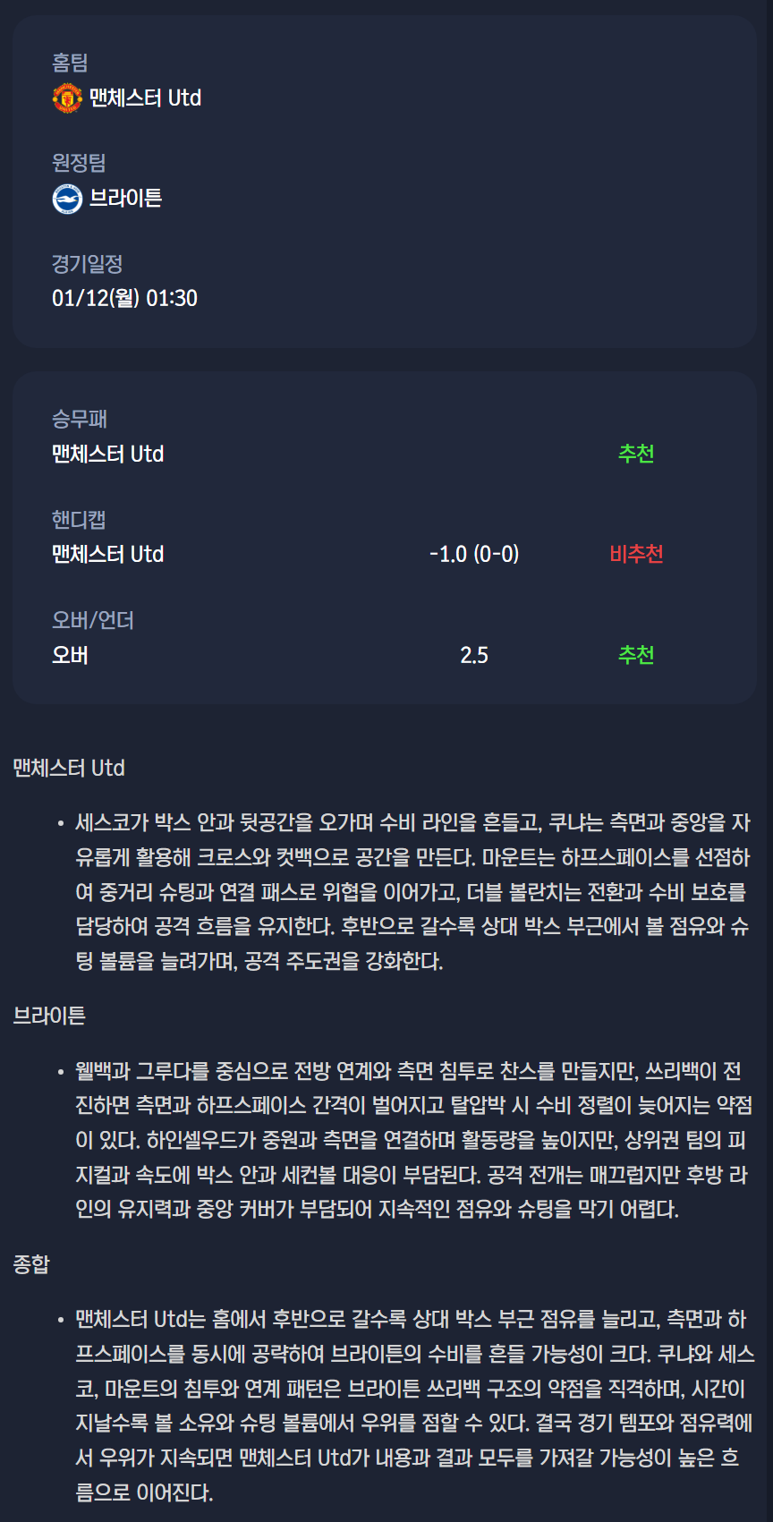 2026년 01월 12일 프랑스FA컵 분석자료 / 축구분석