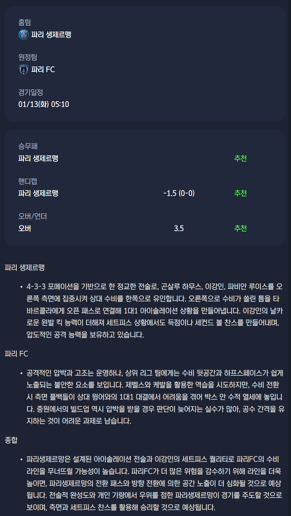 2026년 01월 12일 프랑스FA컵 분석자료 / 축구분석