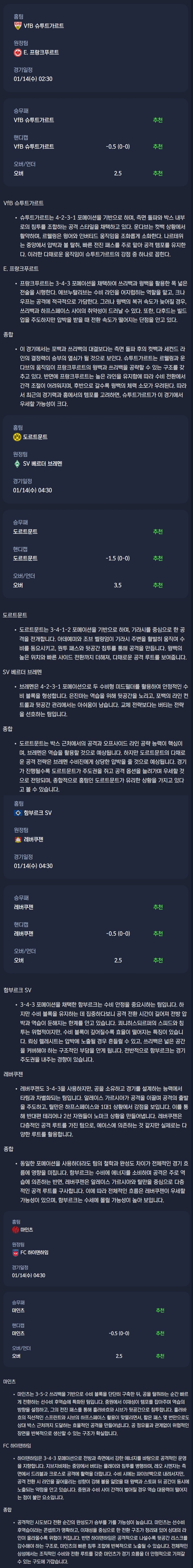 2026년 01월 14일 분데스리가 분석자료 / 축구분석