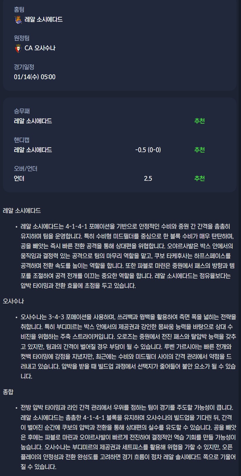 2026년 01월 13일 라리가 분석자료 / 축구분석