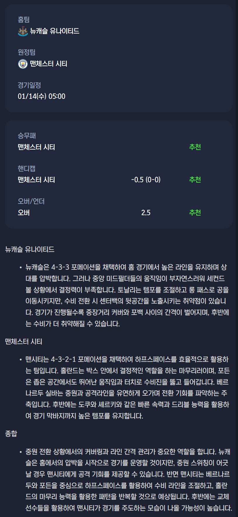 뉴캐슬 유나이티드 vs 맨체스터 시티