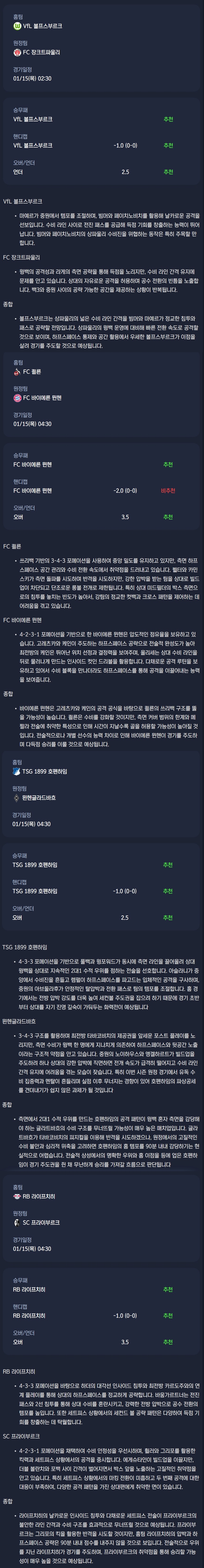 2026년 01월 15일 분데스리가 분석자료 / 축구분석