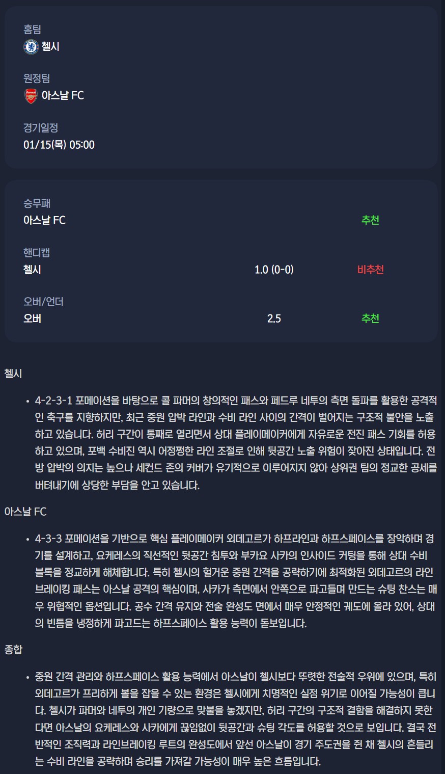 2026년 01월 15일 EPL컵 분석자료 / 축구분석