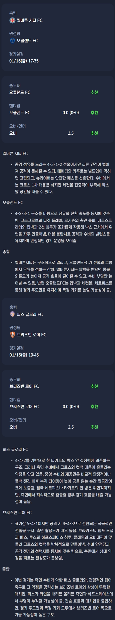 2026년 01월 16일 A리그 분석자료 / 축구분석