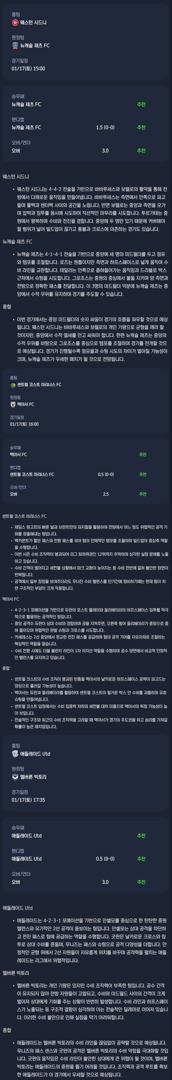 2026년 01월 17일 A리그 분석자료 / 축구분석