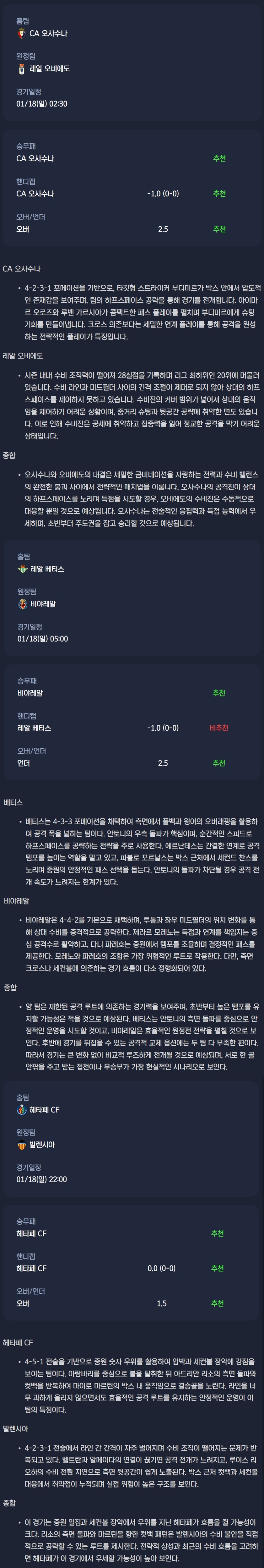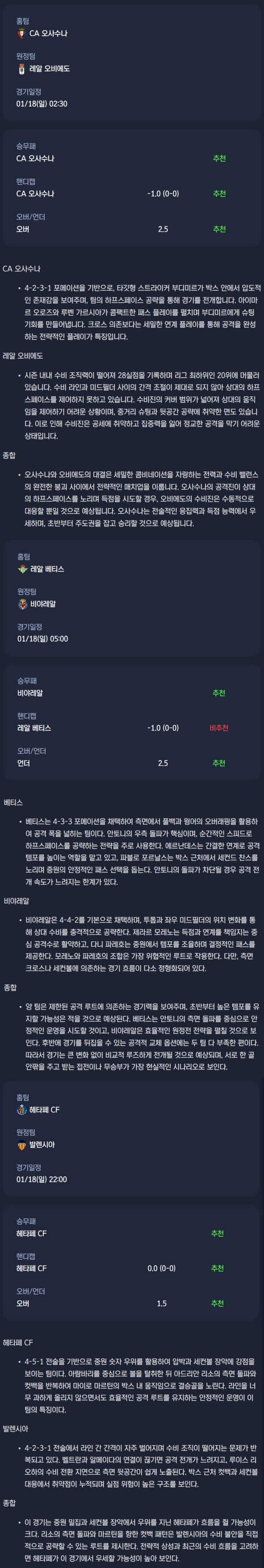 2026년 01월 18일 라리가 분석자료 / 축구분석