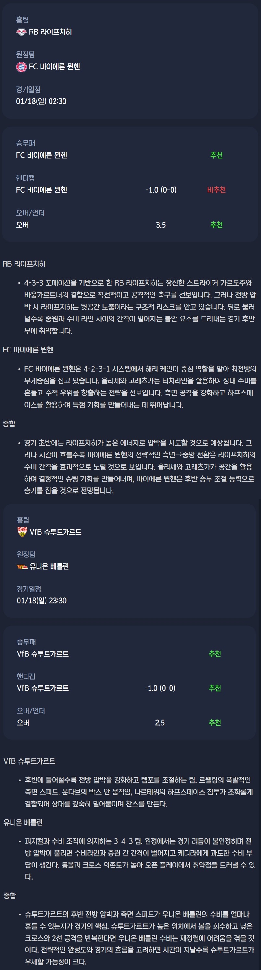 2026년 01월 18일 분데스리가 분석자료 / 축구분석
