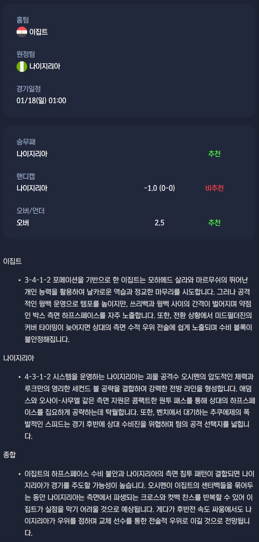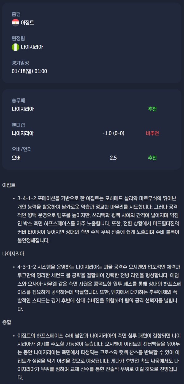 2026년 01월 19일 아프리카 네이션스컵 분석자료 / 축구분석