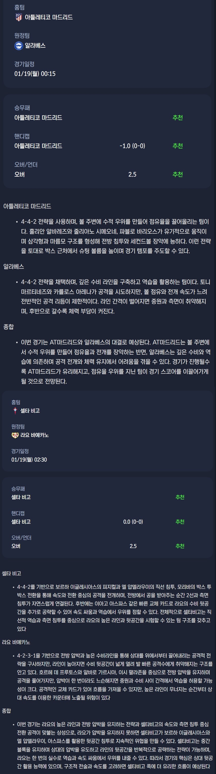 2026년 01월 19일 라리가 분석자료 / 축구분석