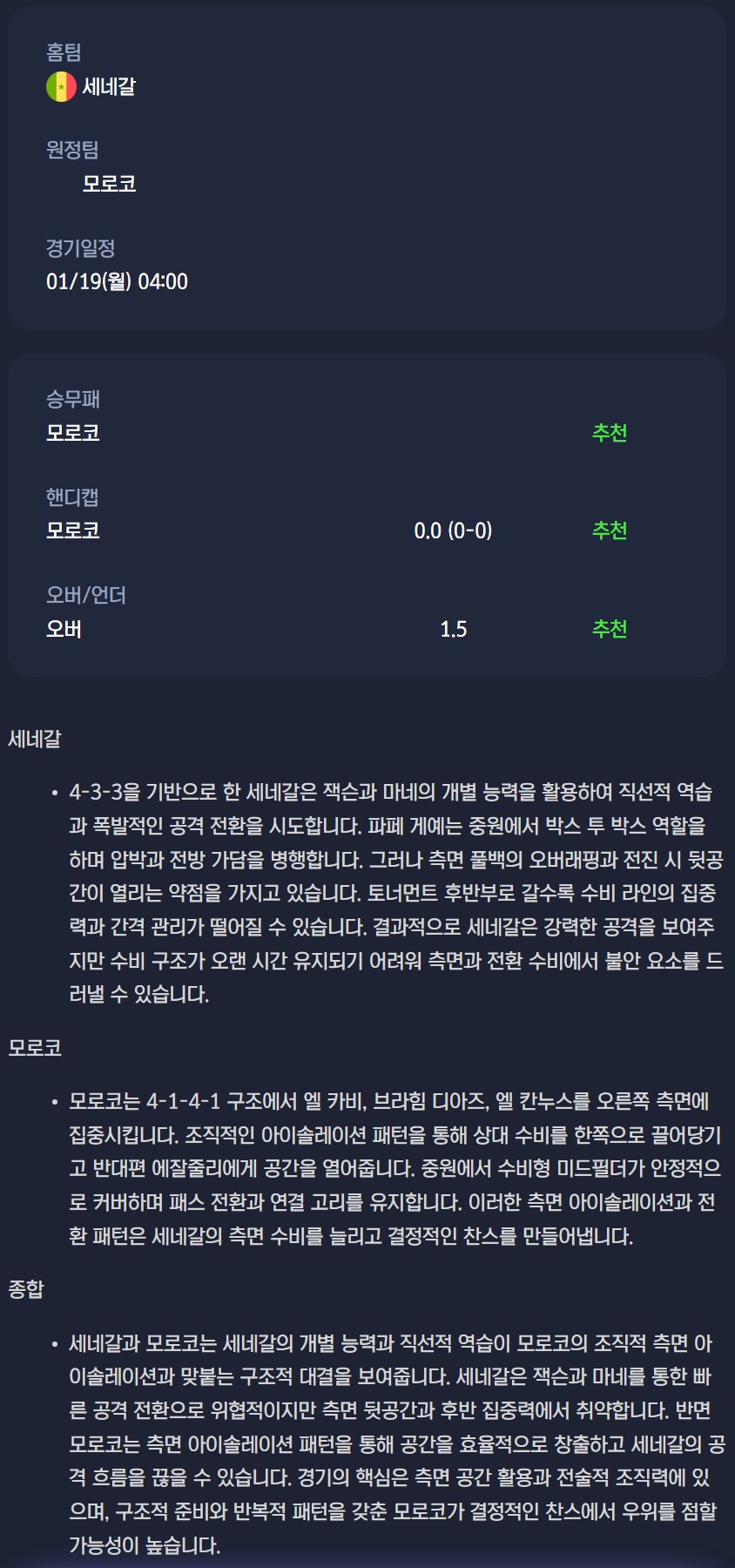 2026년 01월 19일 아프리카 네이션스컵 분석자료 / 축구분석