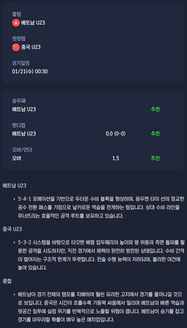 2026년 01월 21일 AFC U23 아시안컵 / 축구분석