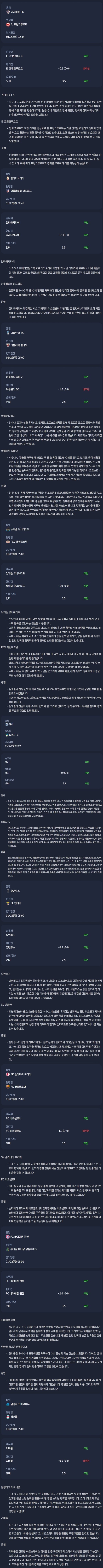 2026년 01월 22일 UCL 분석자료 / 축구분석