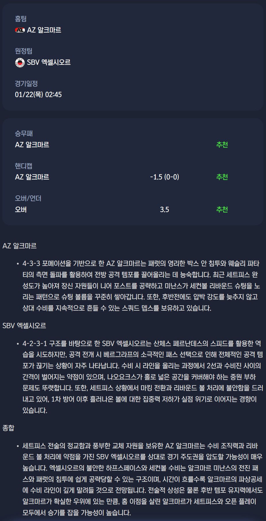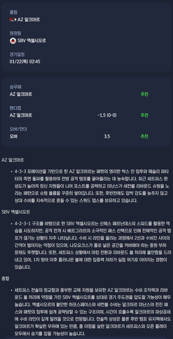 AZ 알크마르 vs SBV 엑셀시오르