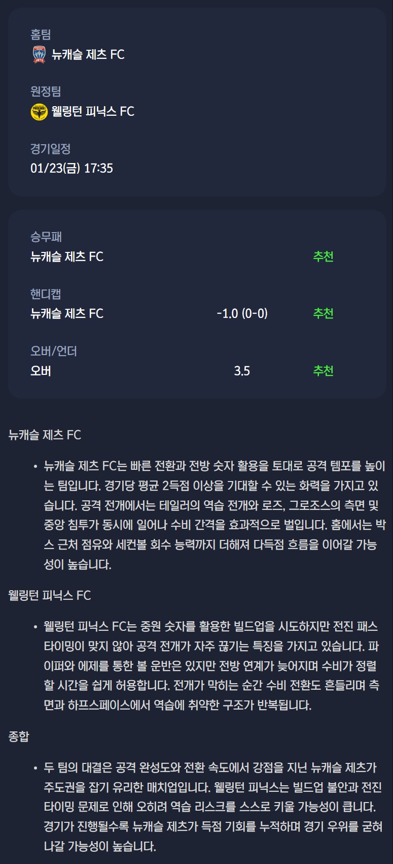 2026년 01월 23일 A리그 분석자료 / 축구분석