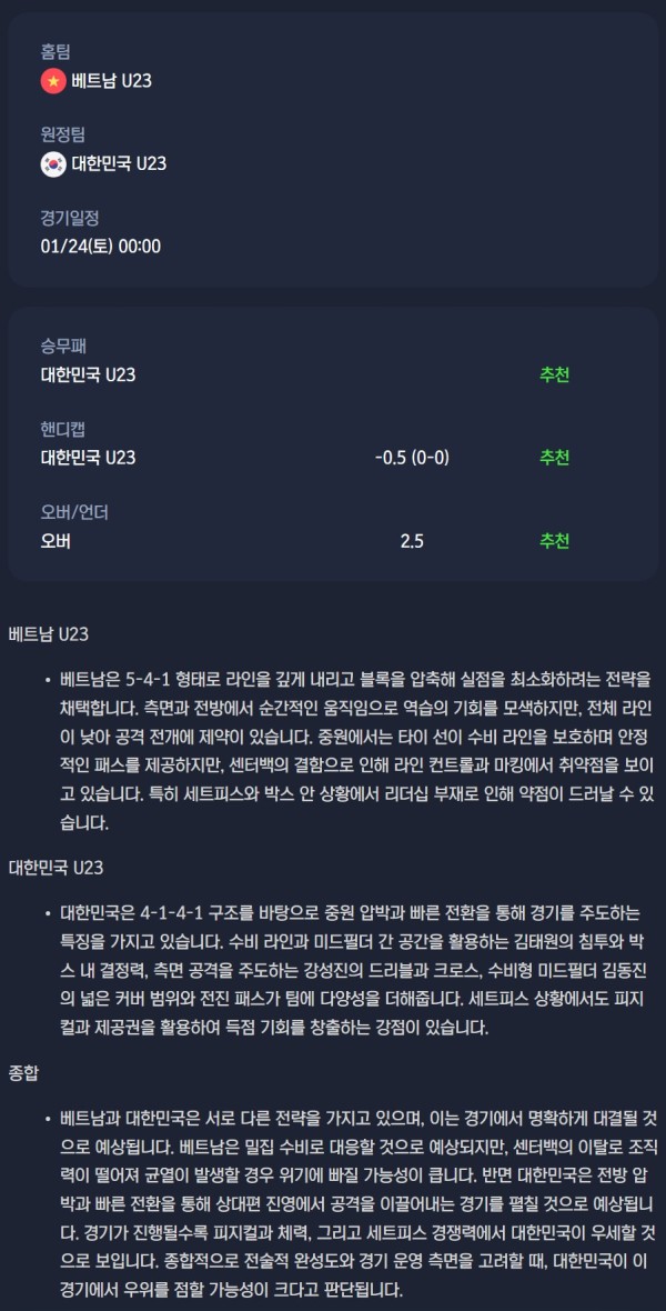 2026년 01월 24일 AFC U23 아시안컵 / 축구분석