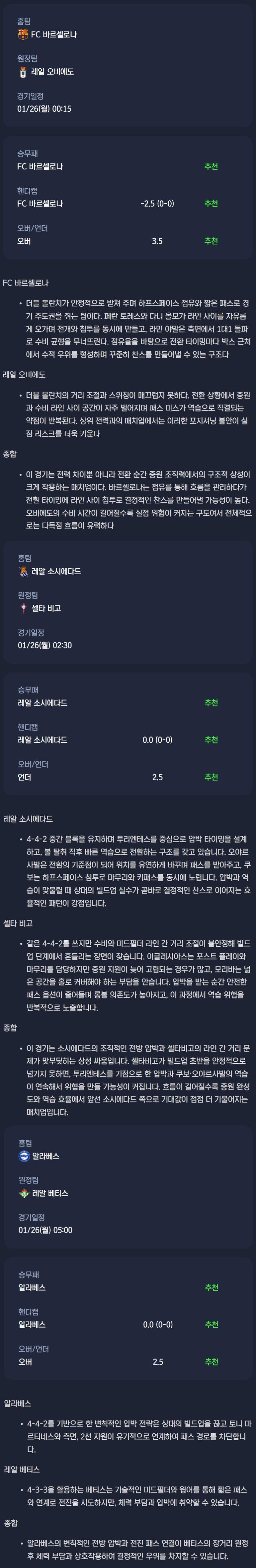2026년 01월 25일 라리가 분석자료 / 축구분석
