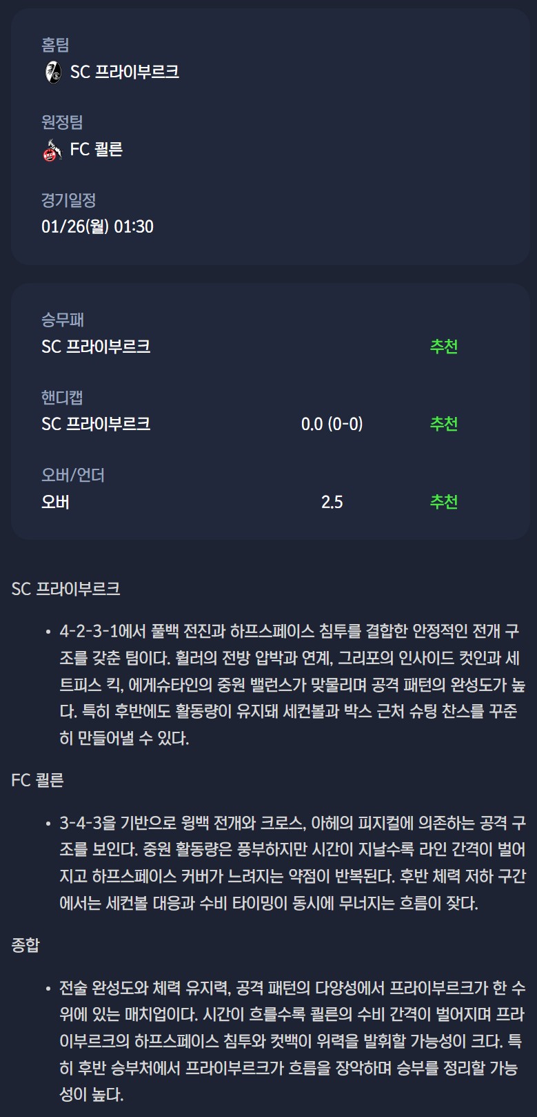 SC 프라이부르크 vs FC 쾰른