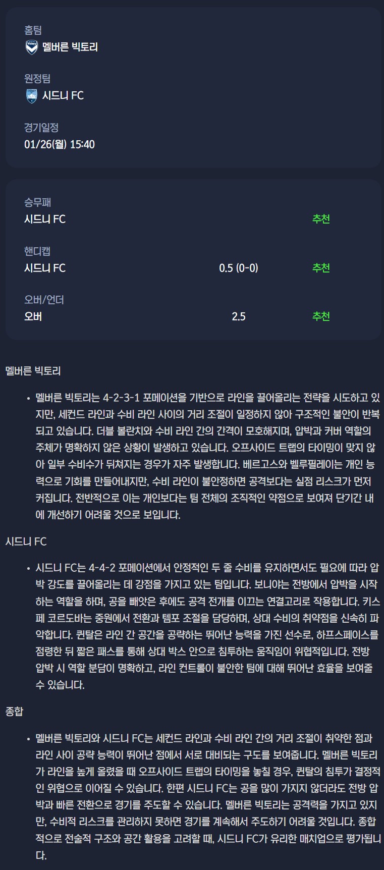 2026년 01월 26일 A리그 분석자료 / 축구분석