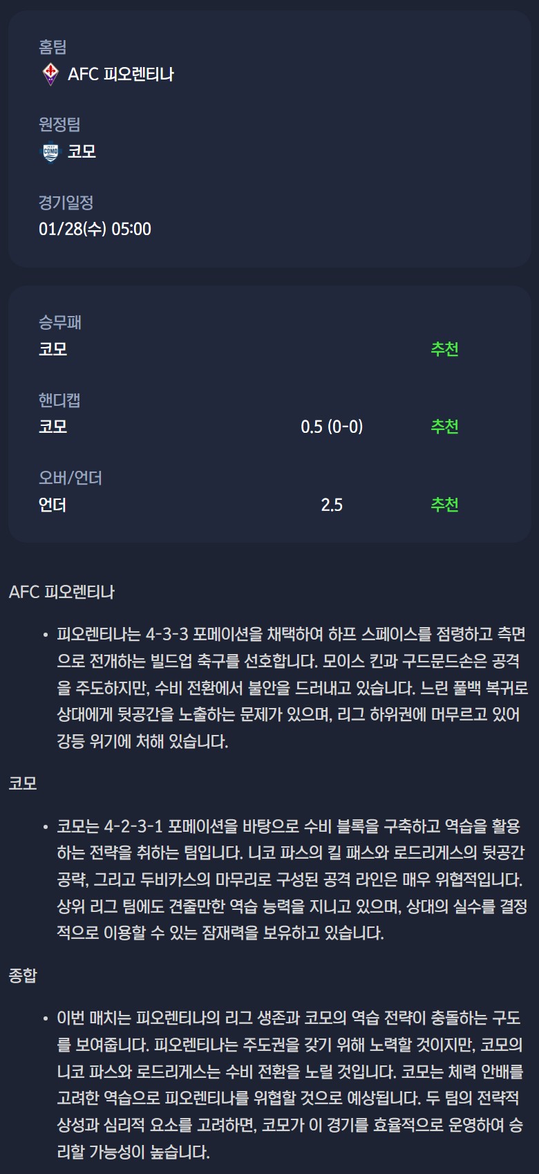 AFC 피오렌티나 vs 코모