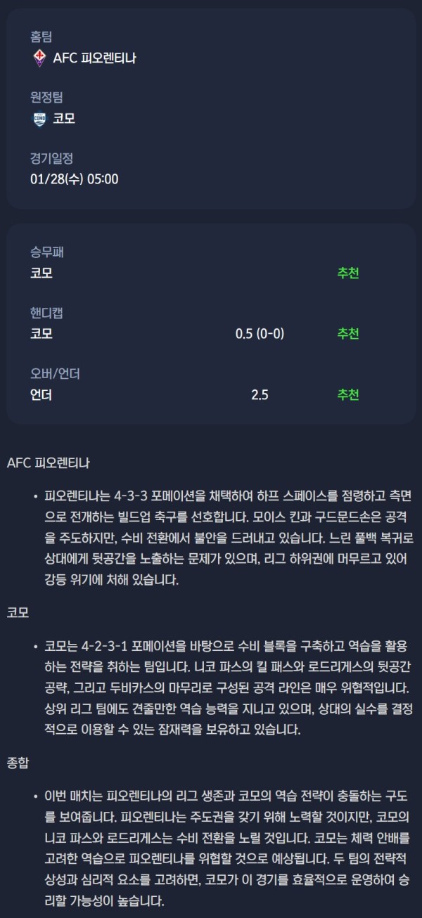 2026년 01월 28일 코파이탈리아 분석자료 / 축구분석