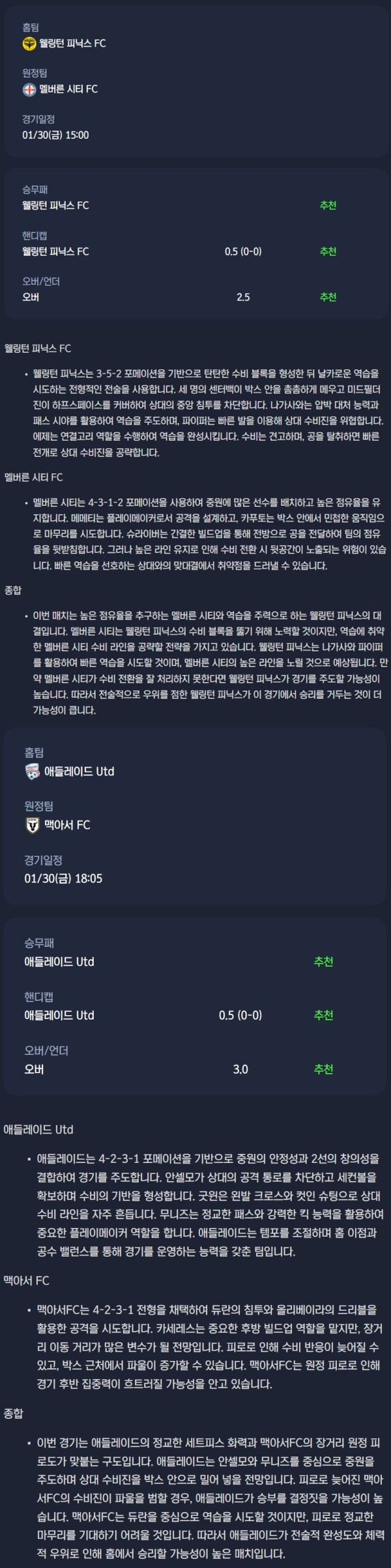 2026년 01월 30일 A리그 분석자료 / 축구분석