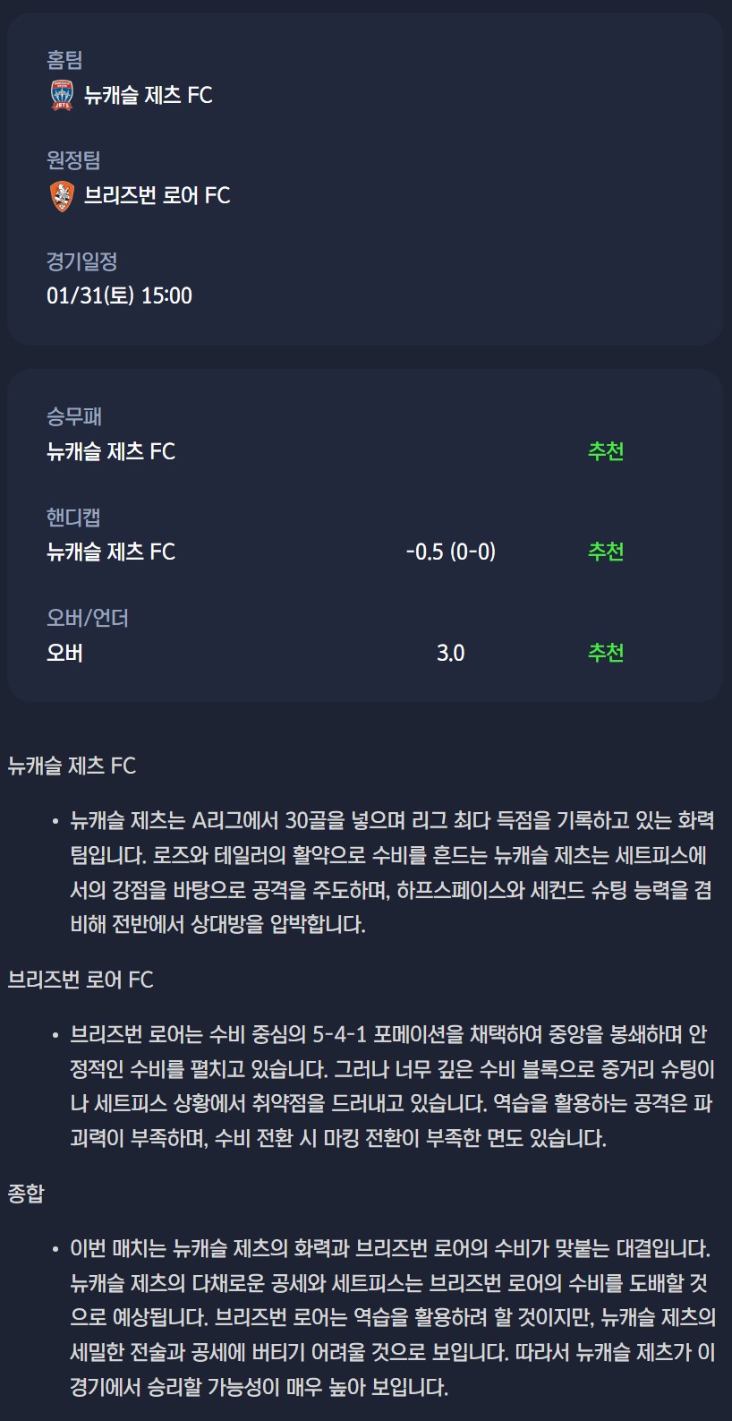 2026년 01월 31일 A리그 분석자료 / 축구분석