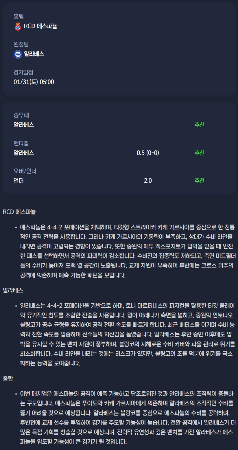 2026년 01월 31일 라리가 분석자료 / 축구분석