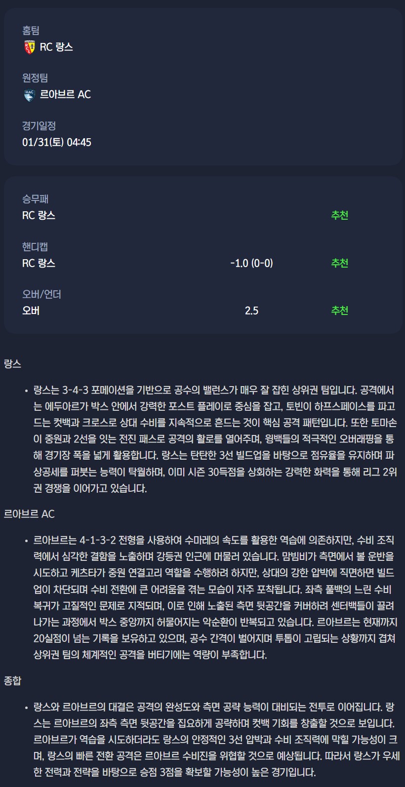 2026년 01월 31일 리그1 분석자료 / 축구분석