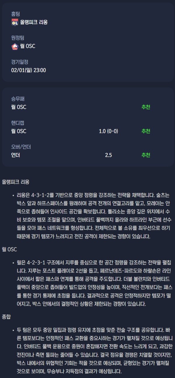 2026년 02월 01일 리그1 분석자료 / 축구분석