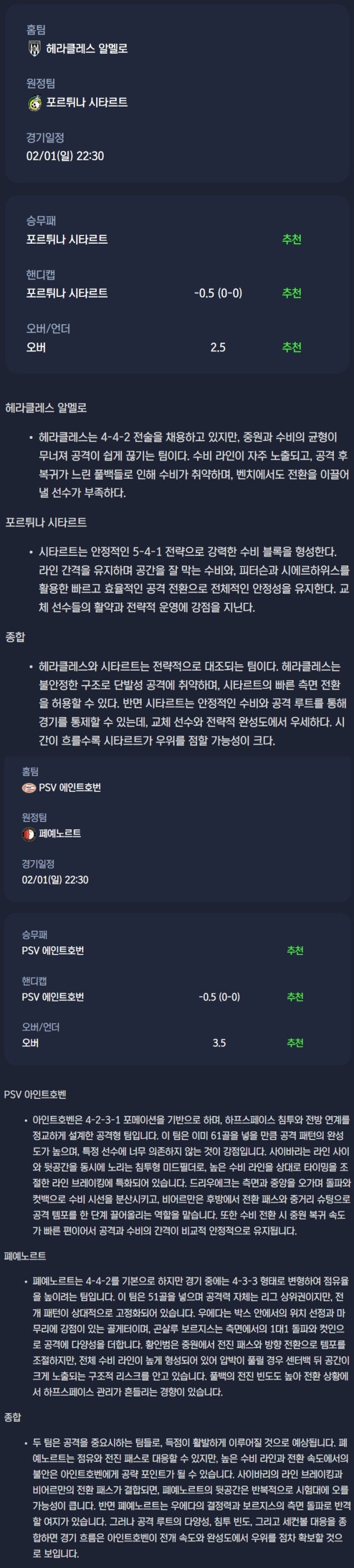 2026년 02월 01일 에레디비시 분석자료 / 축구분석
