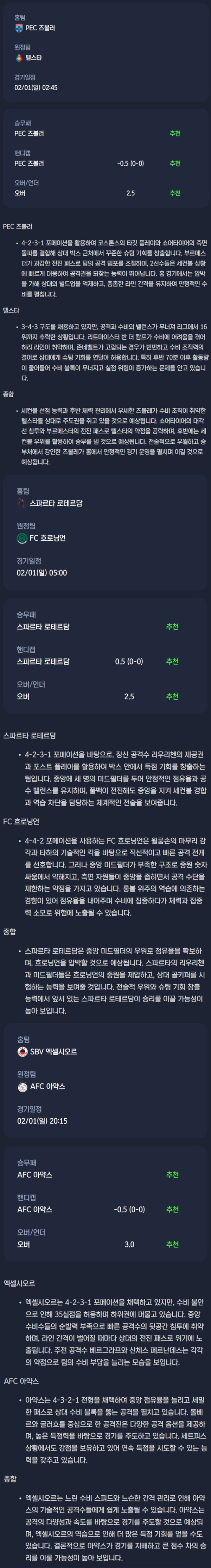 2026년 02월 02일 에레디비시 분석자료 / 축구분석