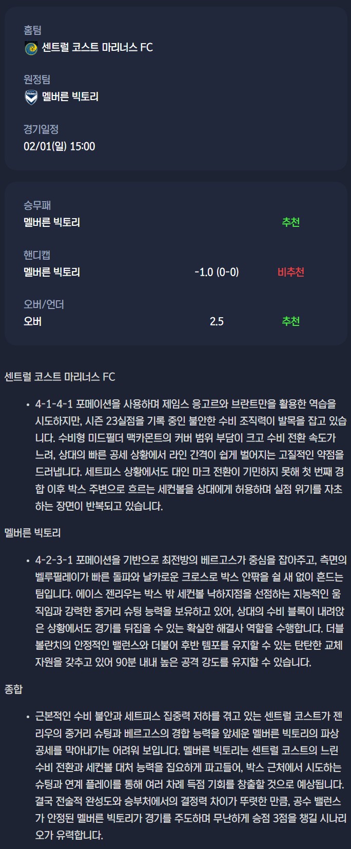 2026년 02월 01일 A리그 분석자료 / 축구분석