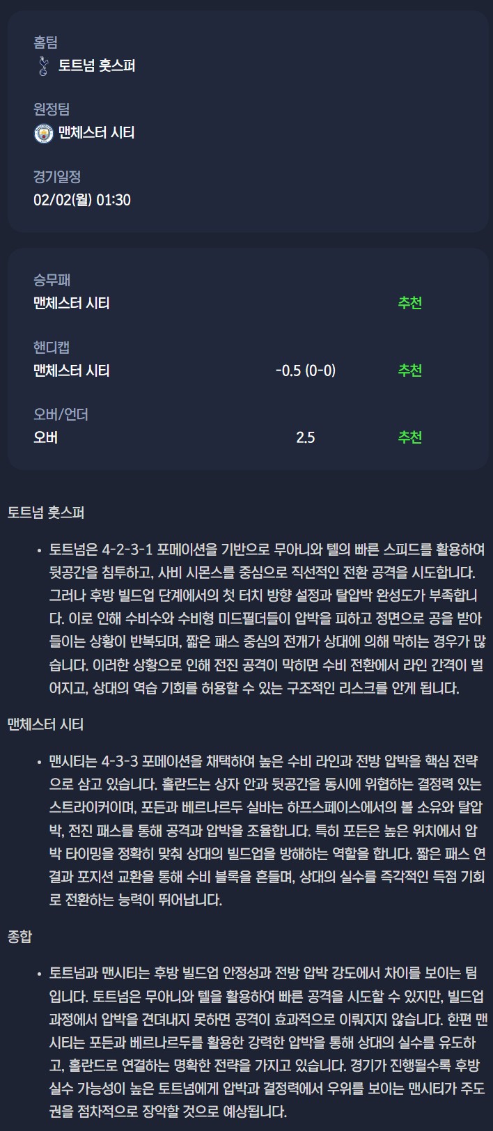 2026년 02월 02일 EPL 분석자료 / 축구분석